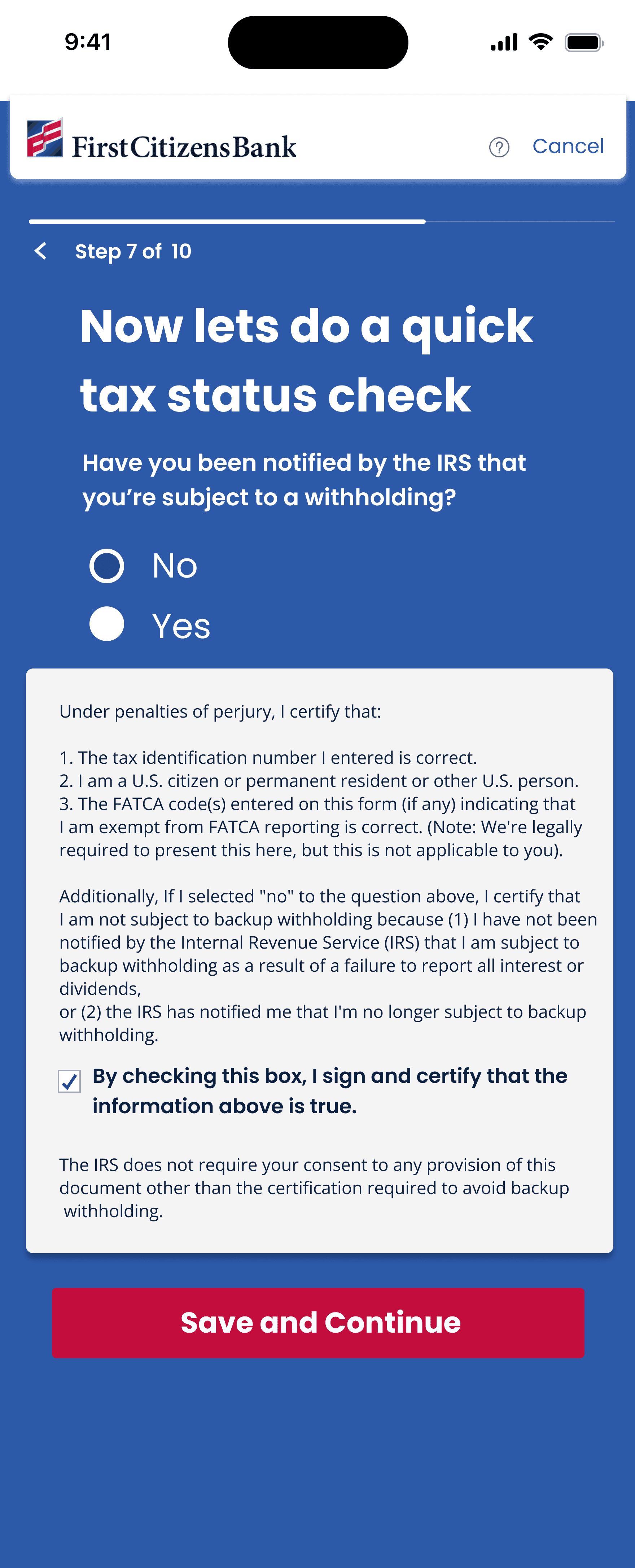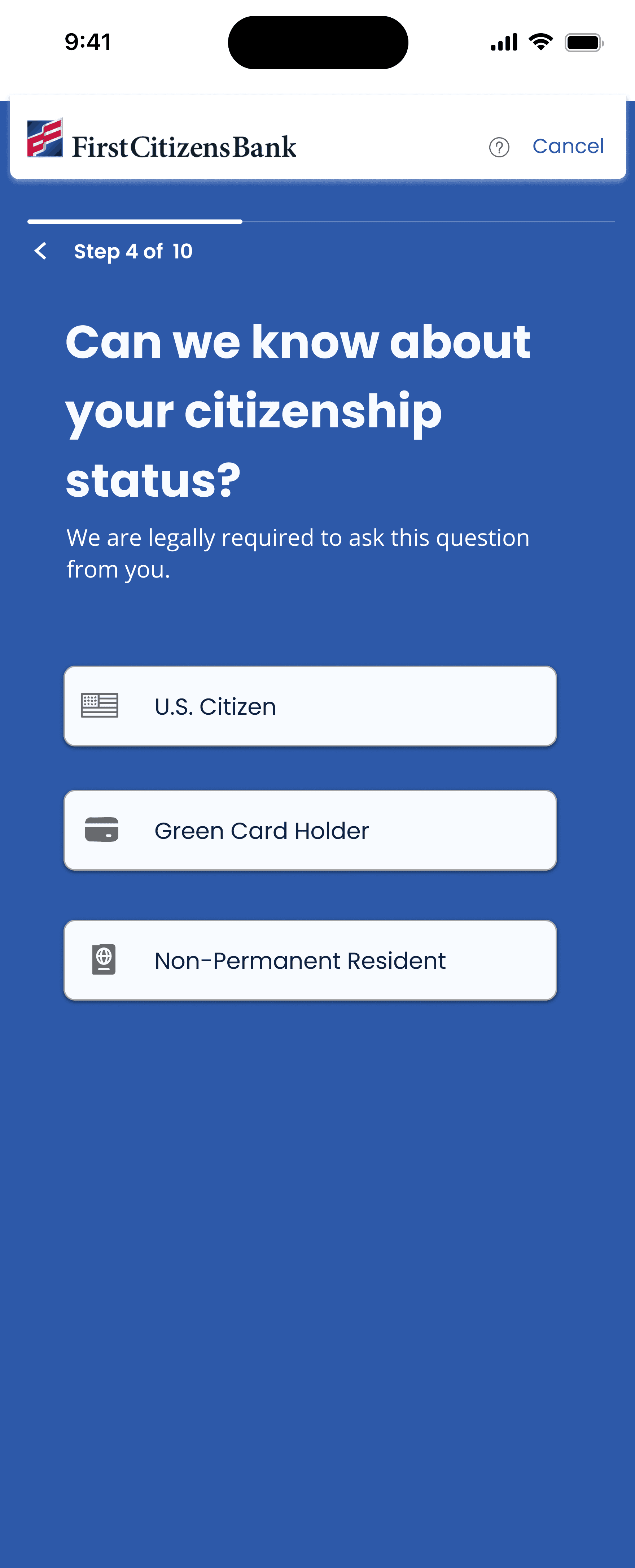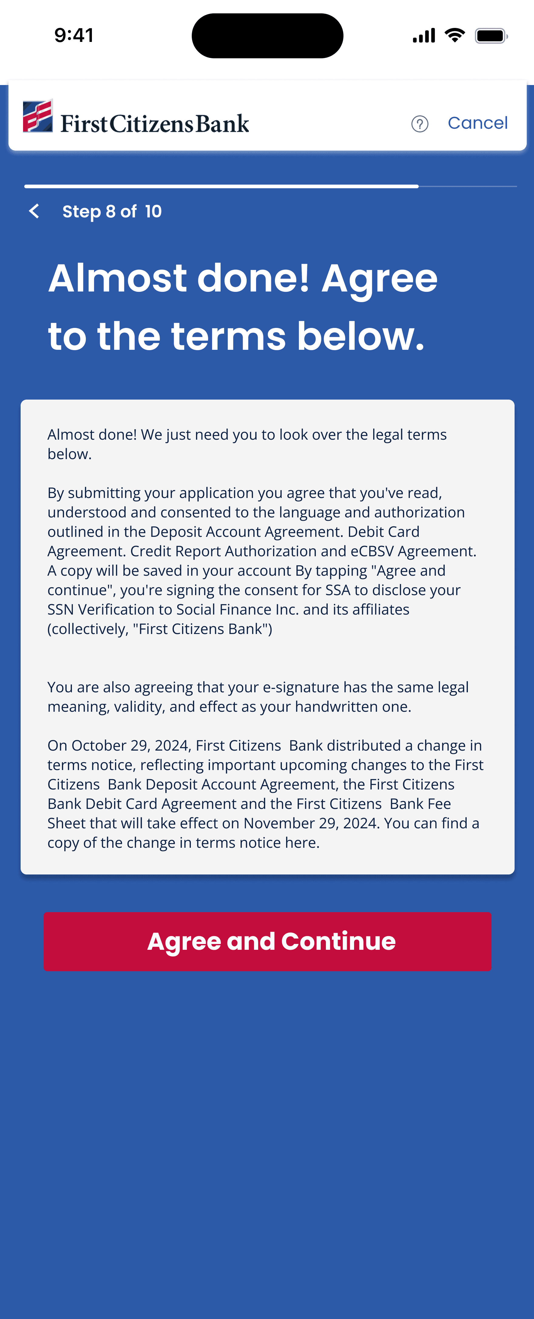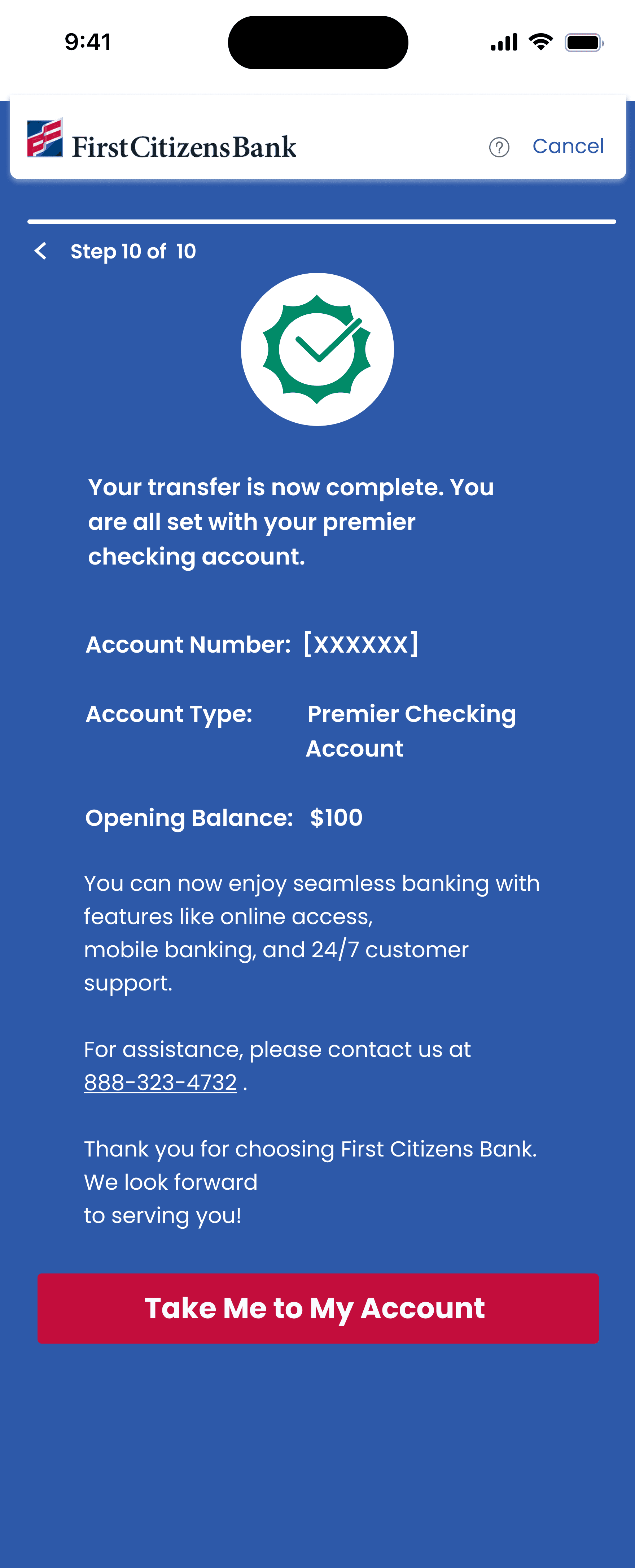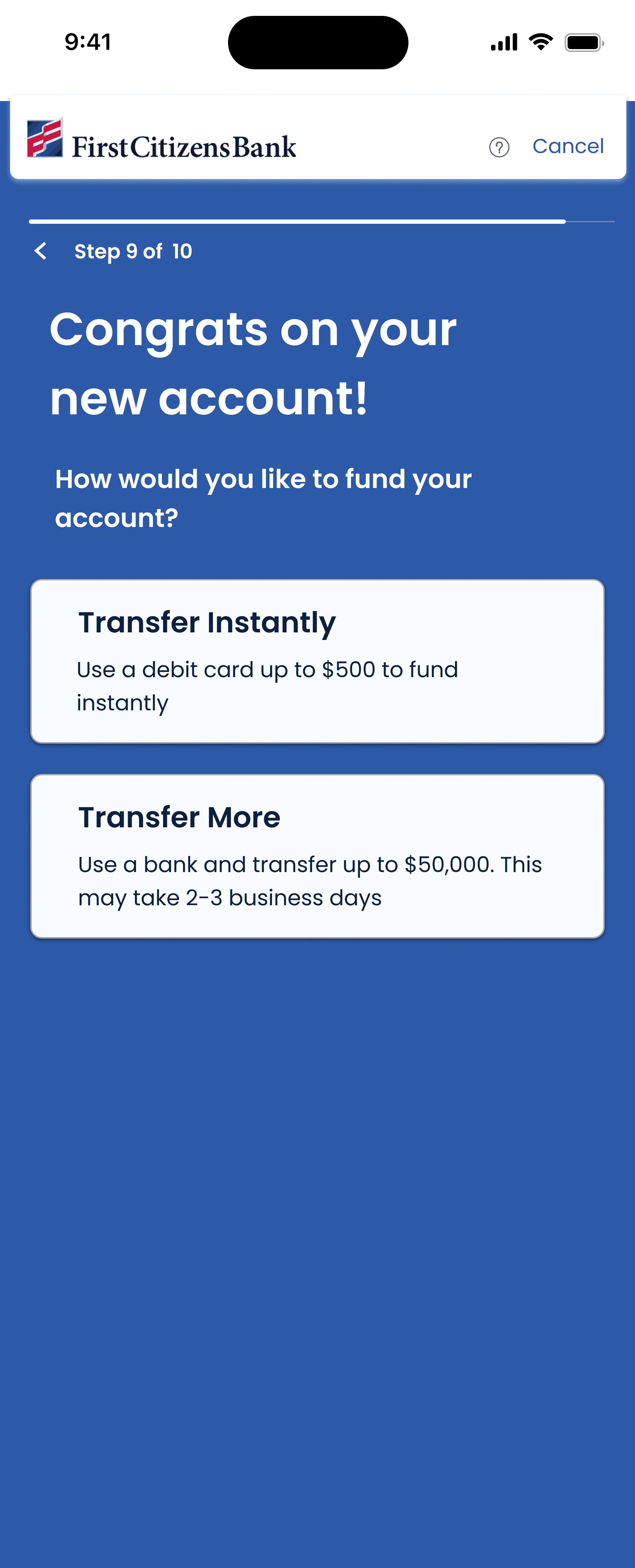 The optimized account opening prototype successfully demonstrated a future-ready digital banking experience to First Citizens Bank leadership, resulting in a highly successful executive pitch and strengthening trust in our experience design capabilities.