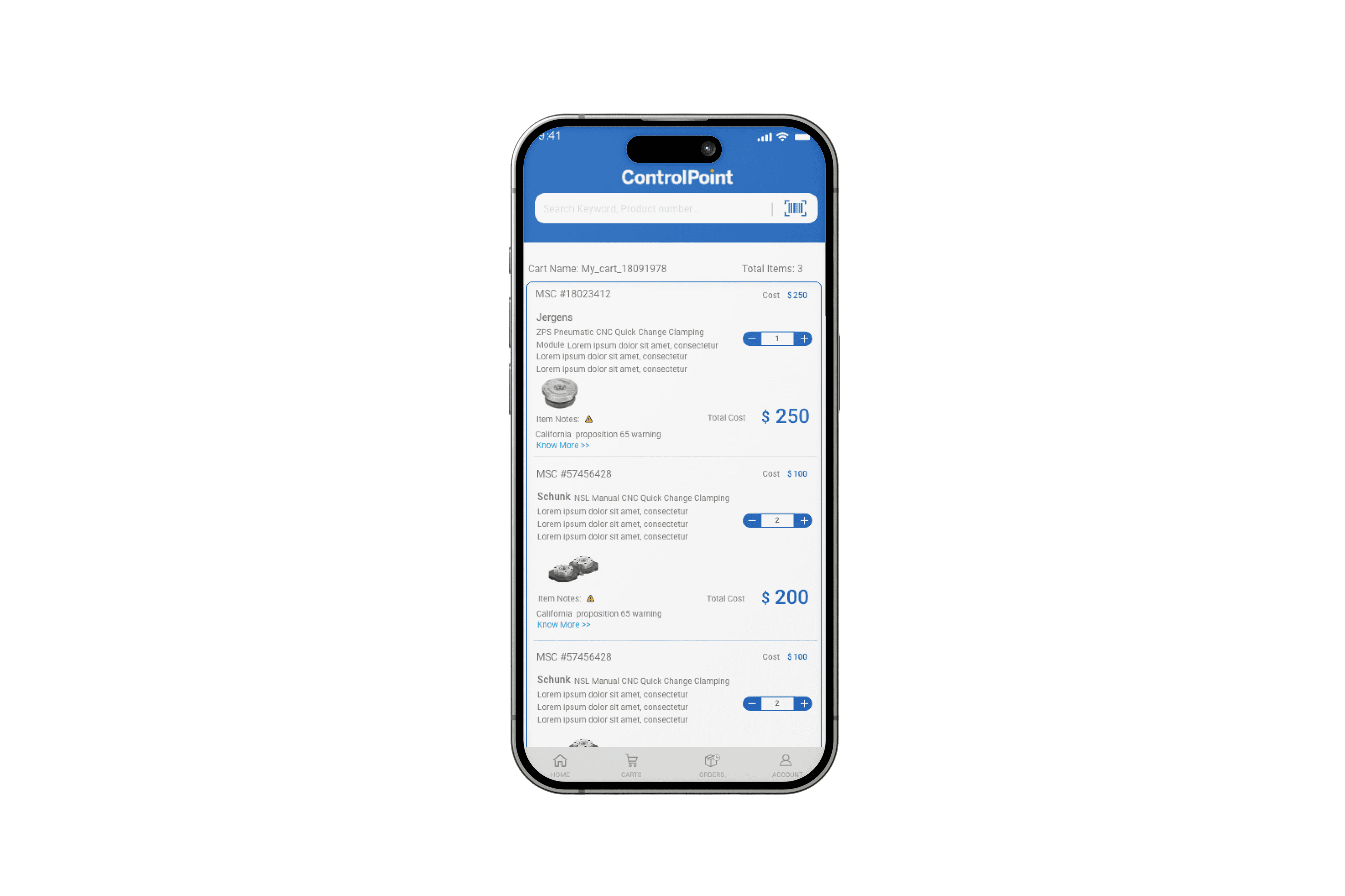 MSC Direct sought to transform its B2B e-commerce platform into a mobile experience for recurring inventory ordering. The existing app lacked UX clarity and deployment readiness, requiring redesign to support efficient replenishment, ordering, and purchasing workflows across diverse industrial and business users.